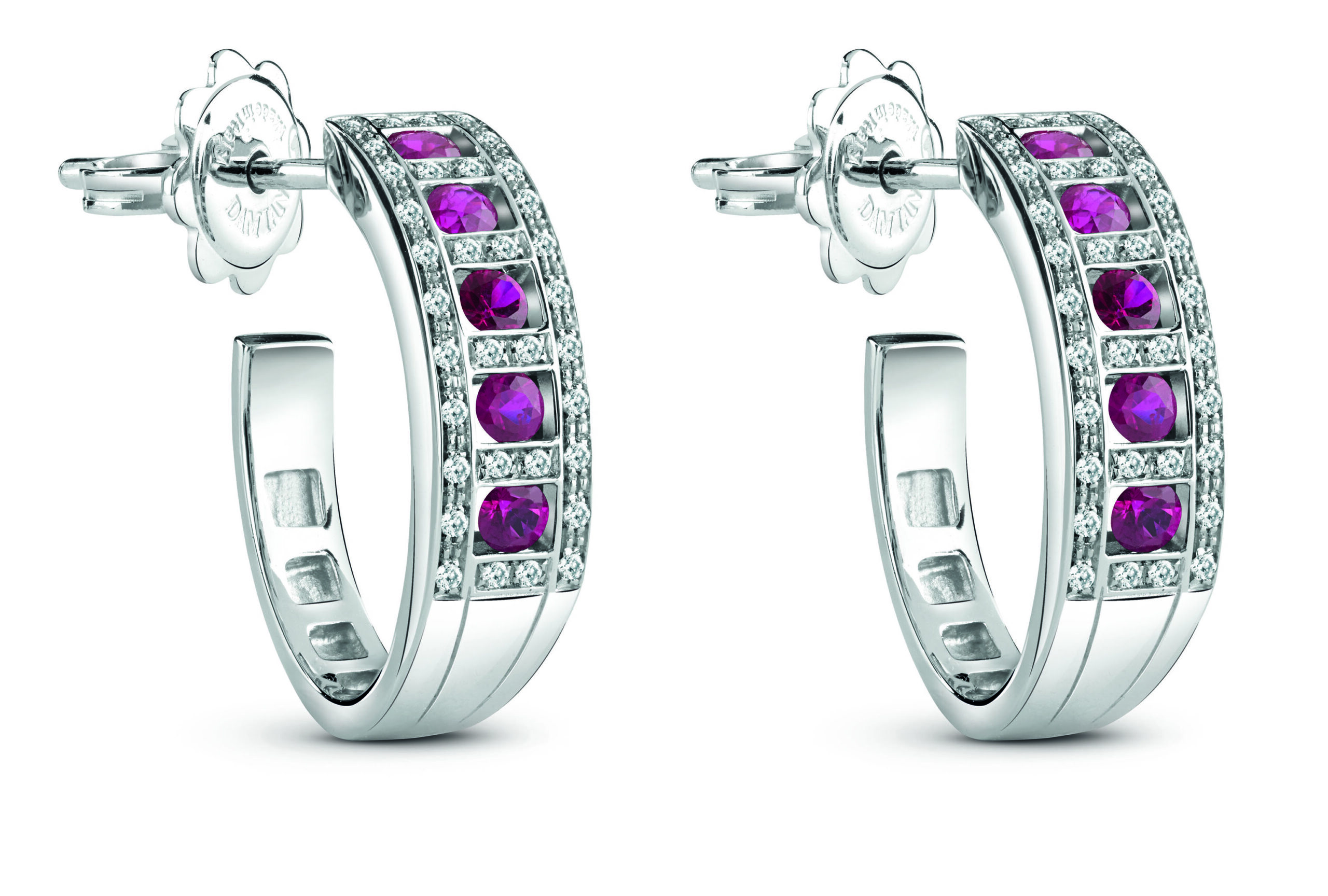 Fanno parte della collezione Belle Epoque anche quattro paia di orecchini in oro bianco, in parure con gli anelli, con diamanti bianchi, black, zaffiri, rubini e smeraldi.